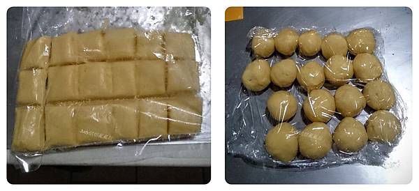 7、將菠蘿皮(不用回溫)分割為18份、搓圓