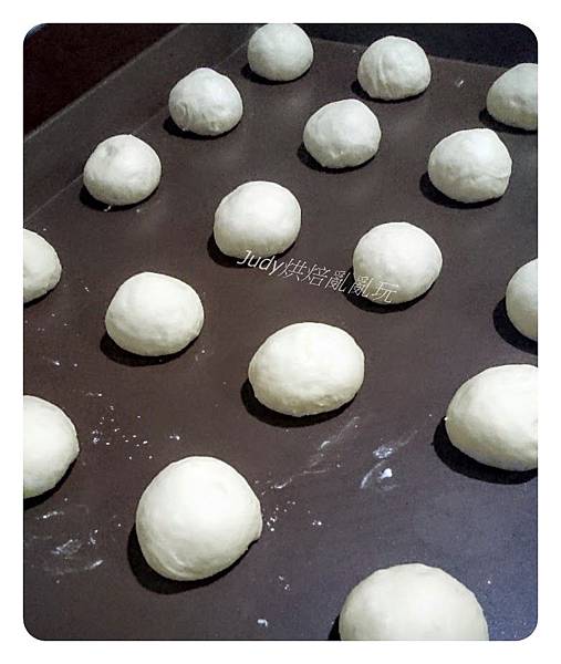 間隔整齊放入烤盤中噴些水放烤箱中發酵50分鐘